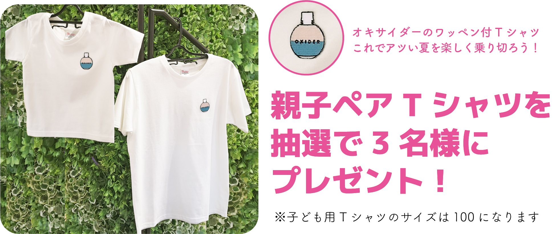1.応募者の中から計3名様にお一人につき親子ペアTシャツを1組プレゼント。